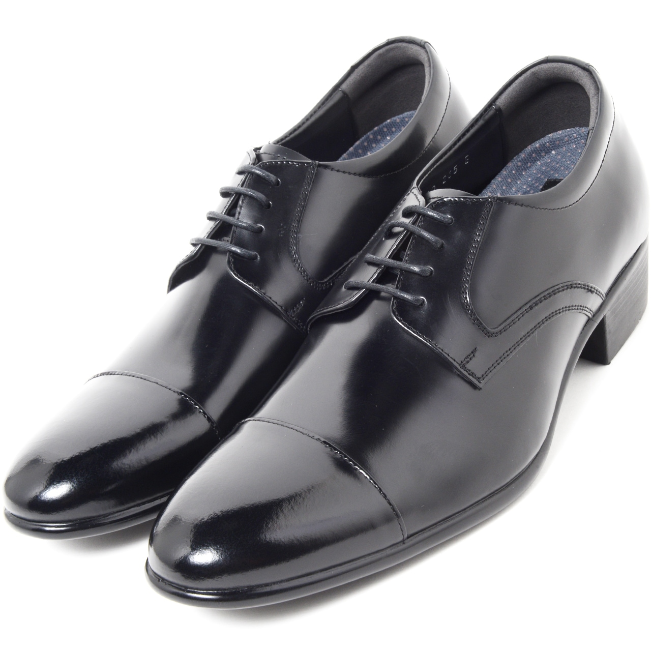 8cmUP ビジネスシューズ ストレートチップ 外羽根 牛革 ブラック【KK1-102-8CM】