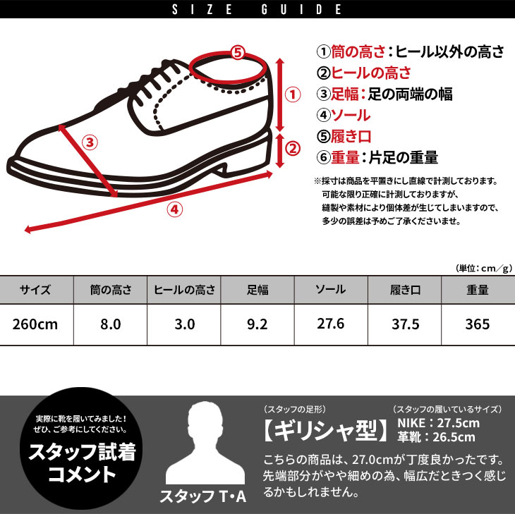 - 約365g/採寸サイズ26.0cm