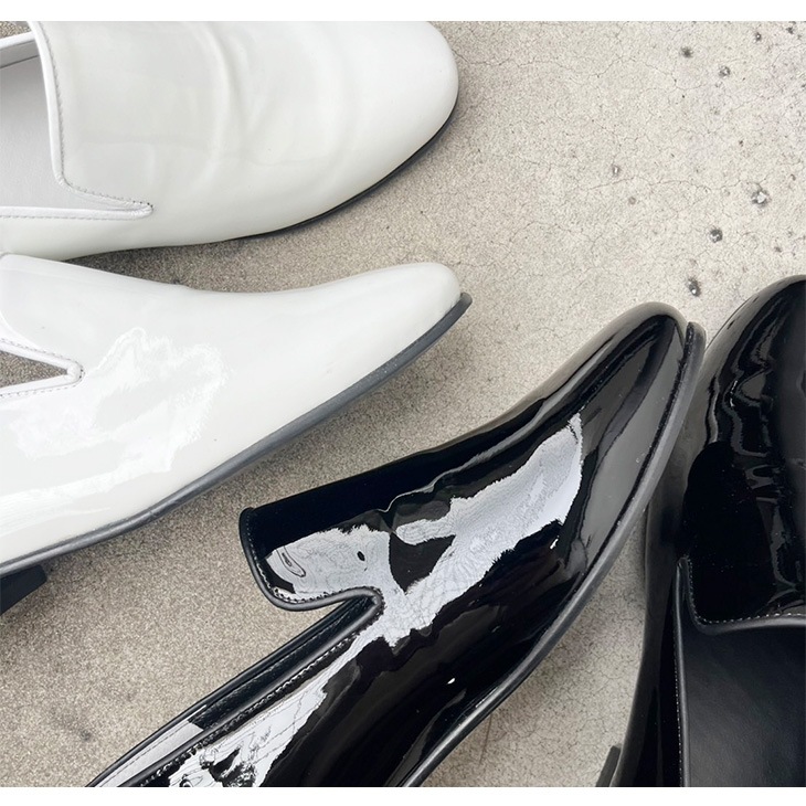 高級感あるエナメル素材:光沢のあるエナメル素材が、足元に高級感を演出。