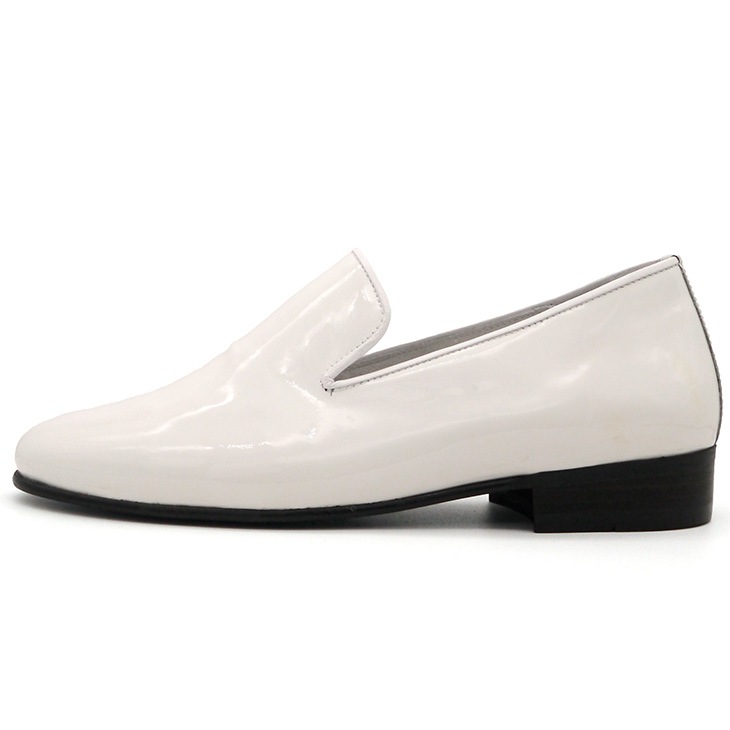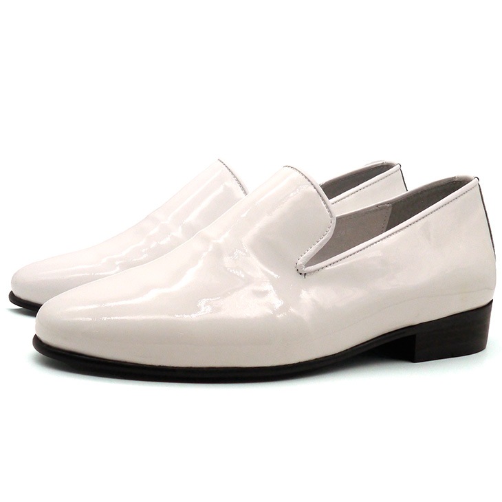 高級感あるエナメル素材:光沢のあるホワイトエナメルが足元を華やかに彩ります。