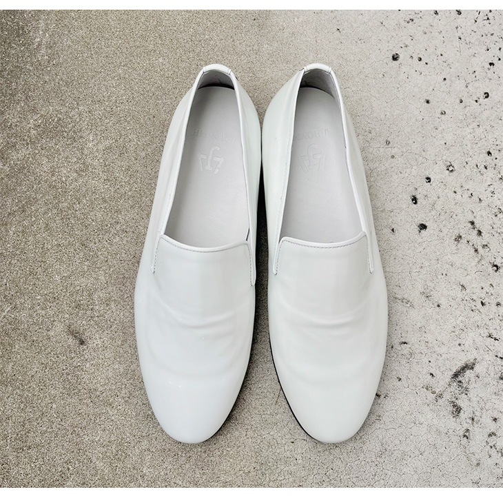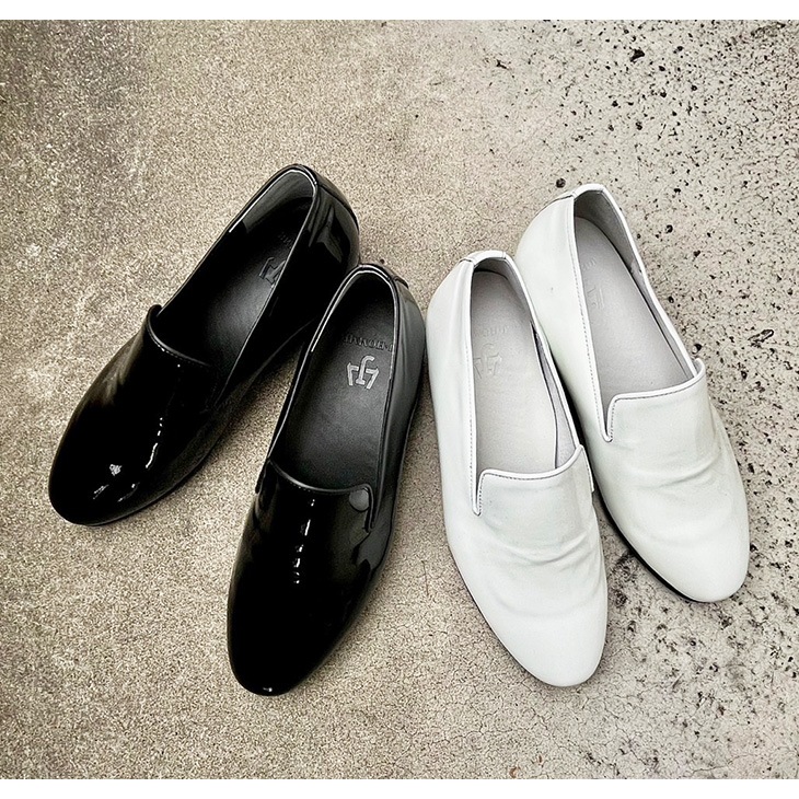 5cmUPのオペラパンプスは、清潔感のあるホワイトエナメルとブラックの本底が織りなすコントラストが特徴。