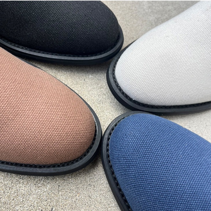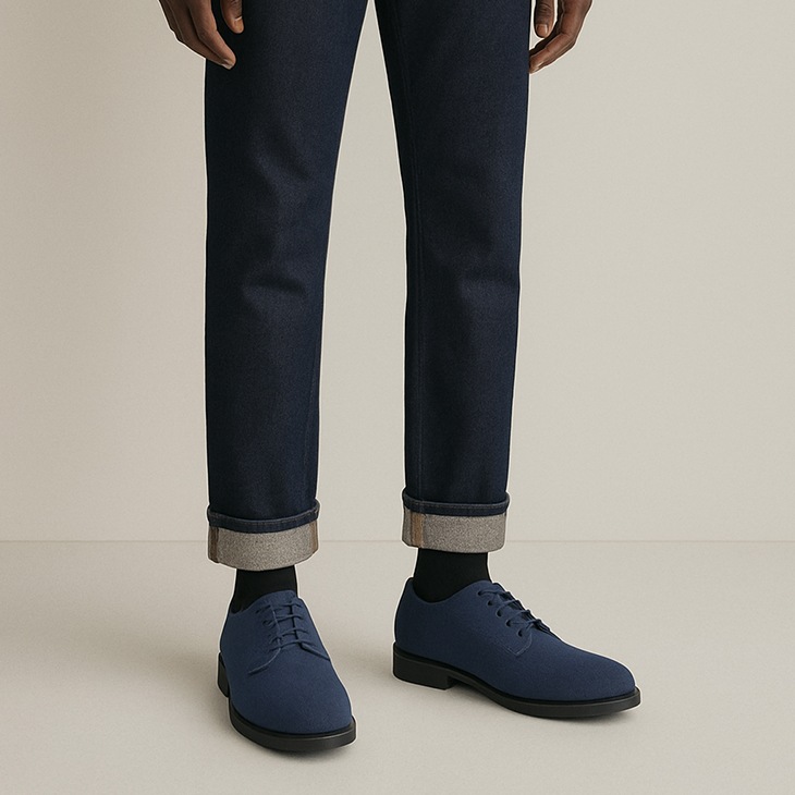 TALLSHOESオリジナルの外羽根プレーントゥに、落ち着いたネイビーキャンバス素材を採用。