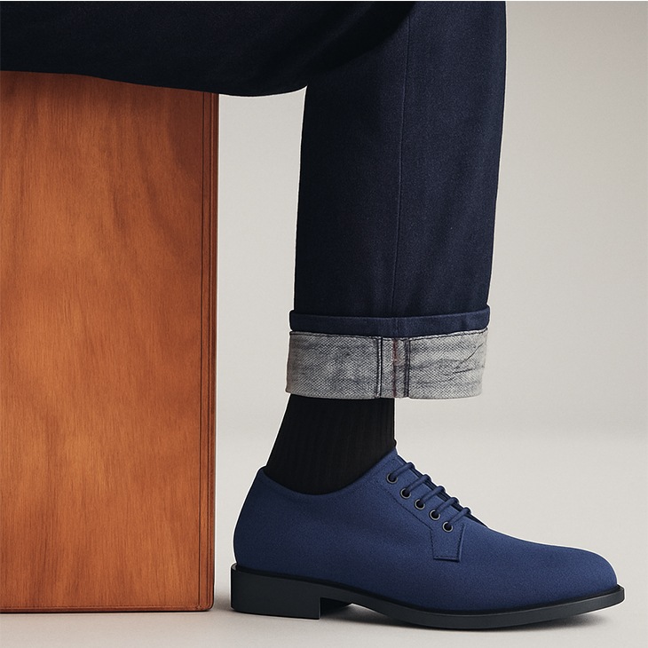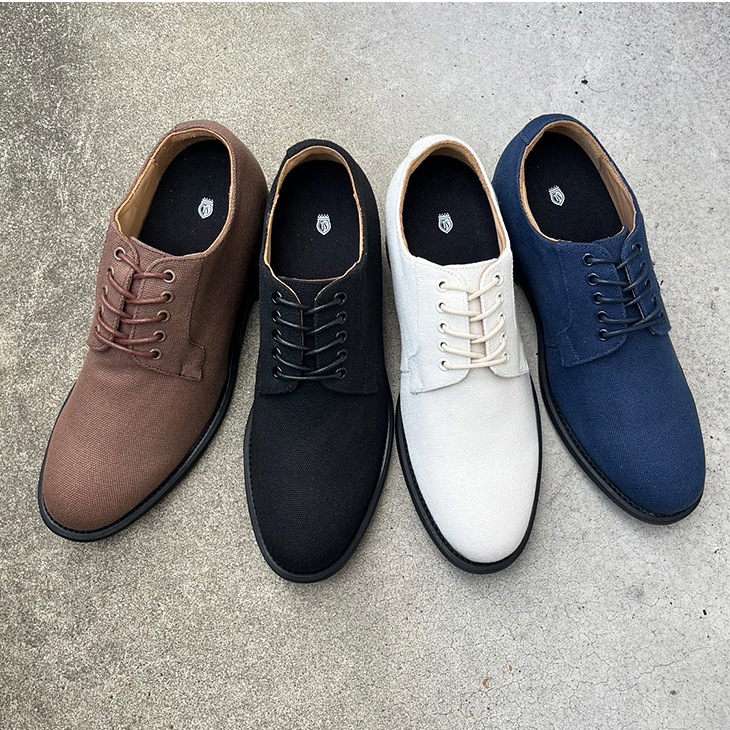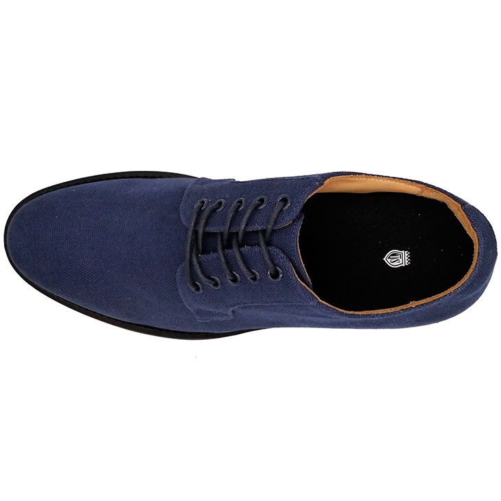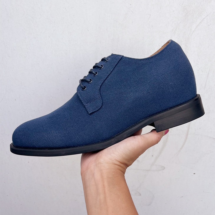 TALLSHOESオリジナルの外羽根プレーントゥに、落ち着いたネイビーキャンバス素材を採用。