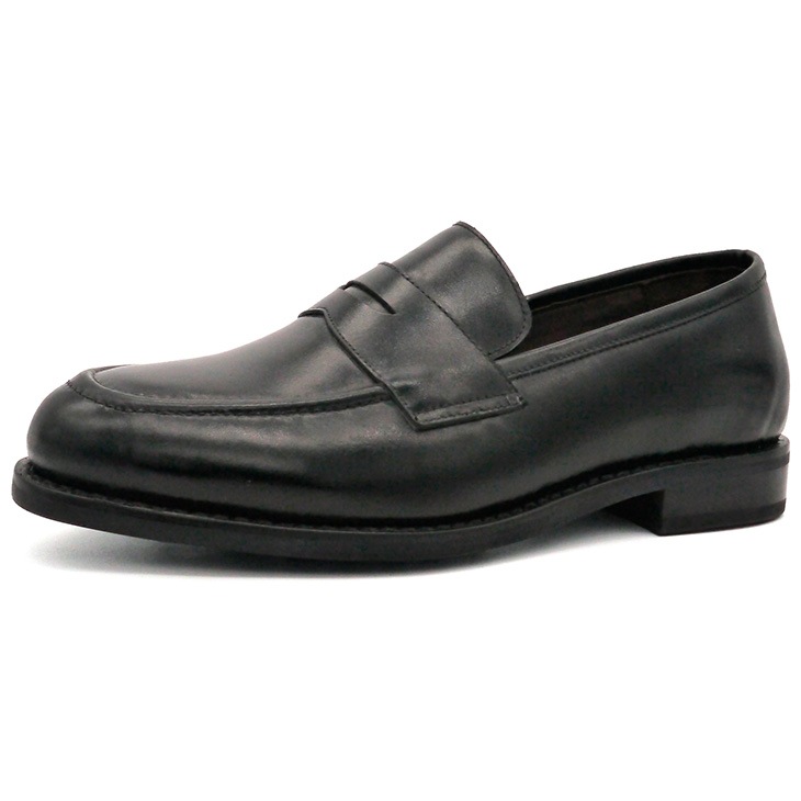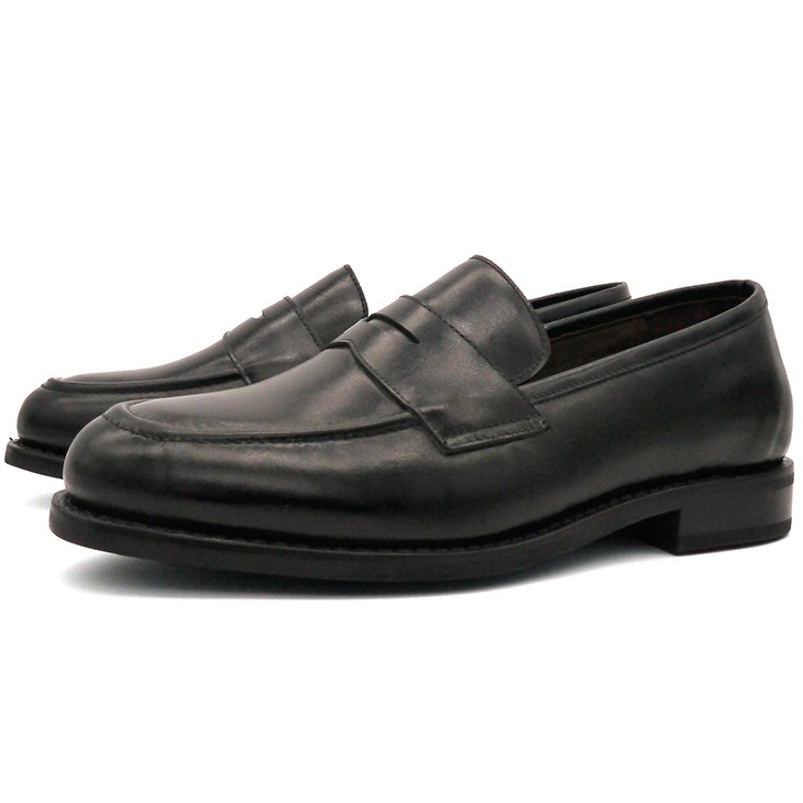 甲部分のストラップが特徴的なコインローファーは、ビジネスにも休日のカジュアルにもマッチ。