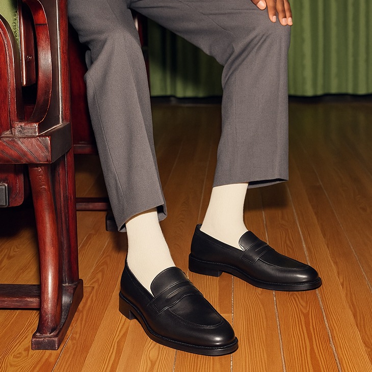 クラシカルな表情と実用性を兼ね備えた【5cmUP コインローファー】で、ビジネスもプライベートもスマートに。